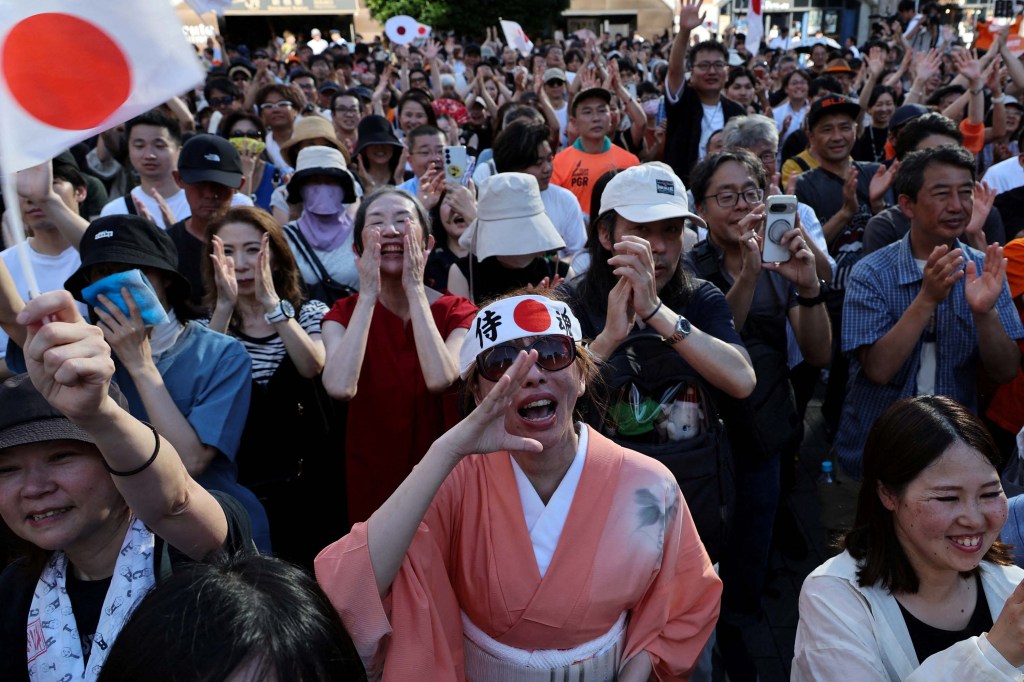 在今年4月,共同通訊社的一項輿論調查中,受訪者對參政黨的支持率僅1%。6月前後,參政黨開始主推「日本人優先」的口號,候選人也多次表達「外國人被過度優待」的觀點。7月,共同通訊社針對選舉的輿論調查顯示,參政黨的支持率達8.1%,僅次於自民黨。