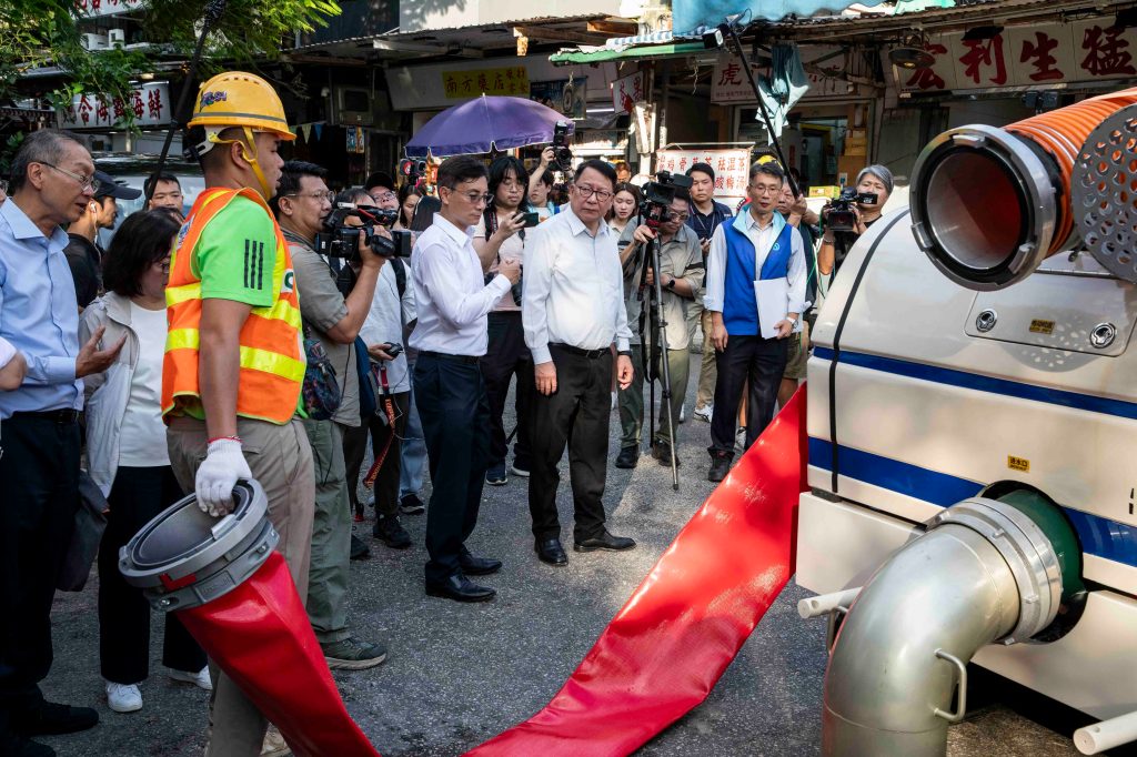 2025年9月22日,超強颱風樺加沙襲港前,陳國基帶領局長到鯉魚門三家村視察。攝:林振東/端傳媒