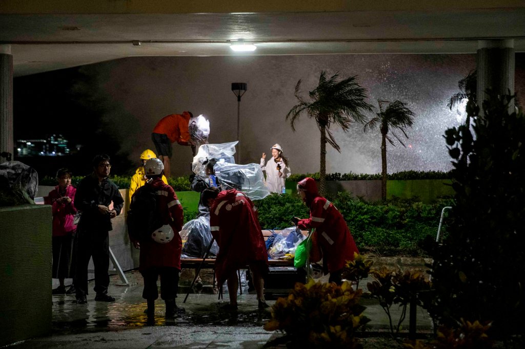 2025年9月24日,超強颱風樺加沙襲港,消防員在鯉魚門三家村執勤。攝:林振東/端傳媒