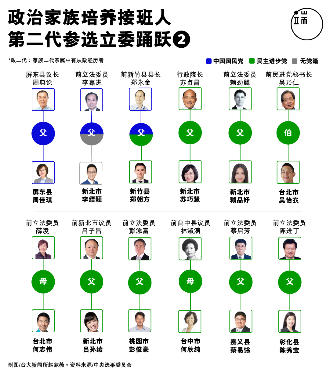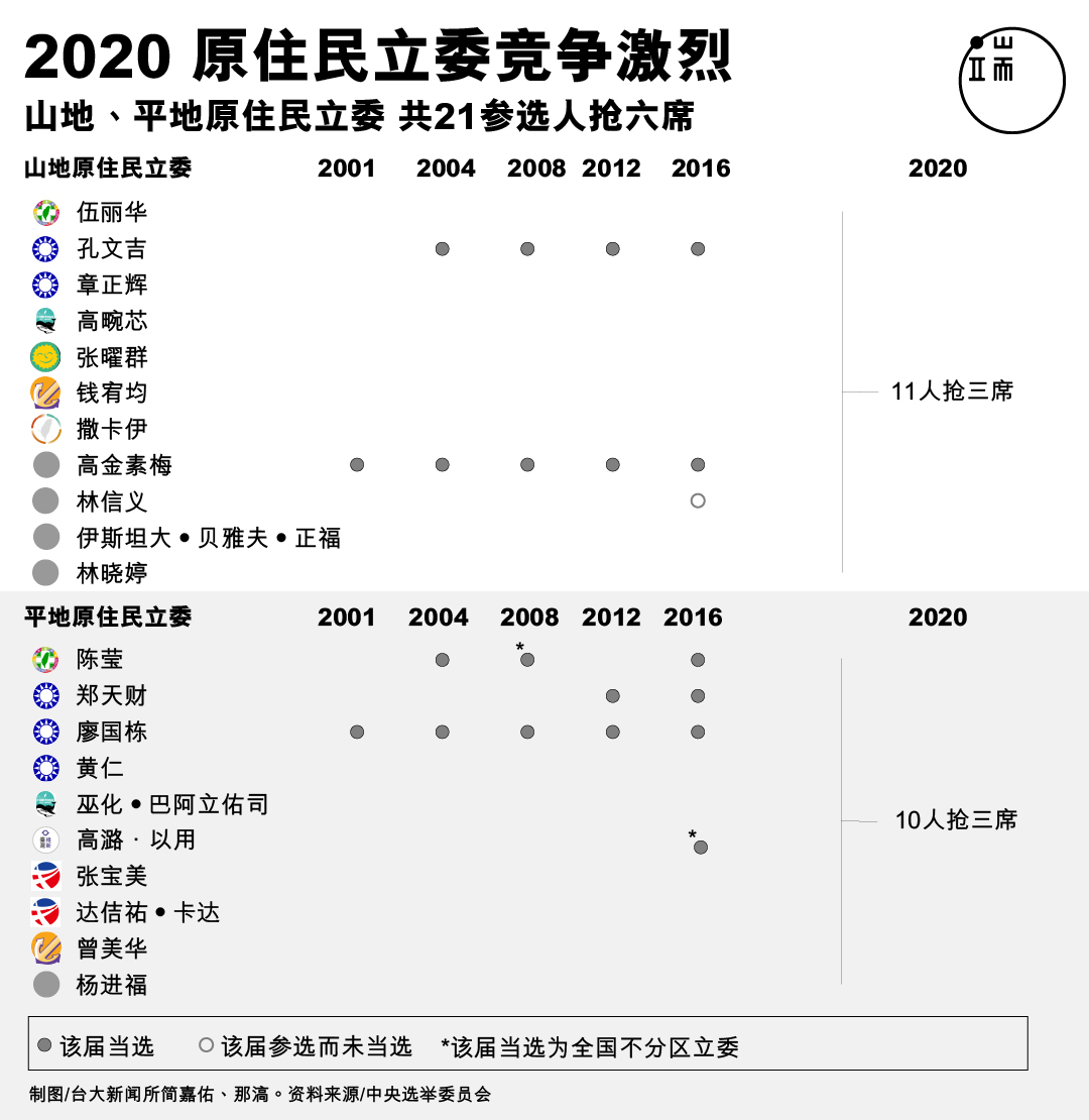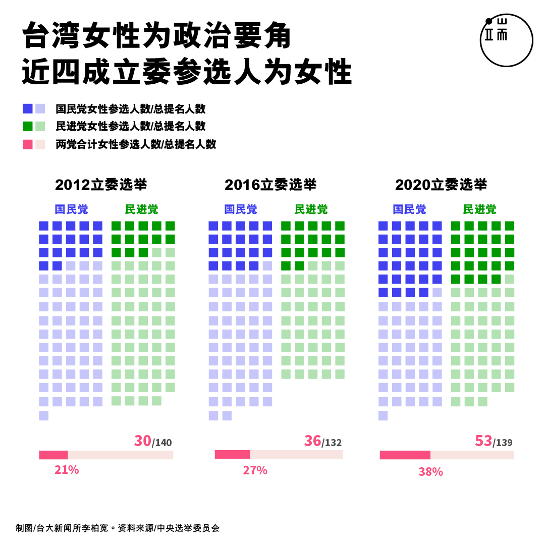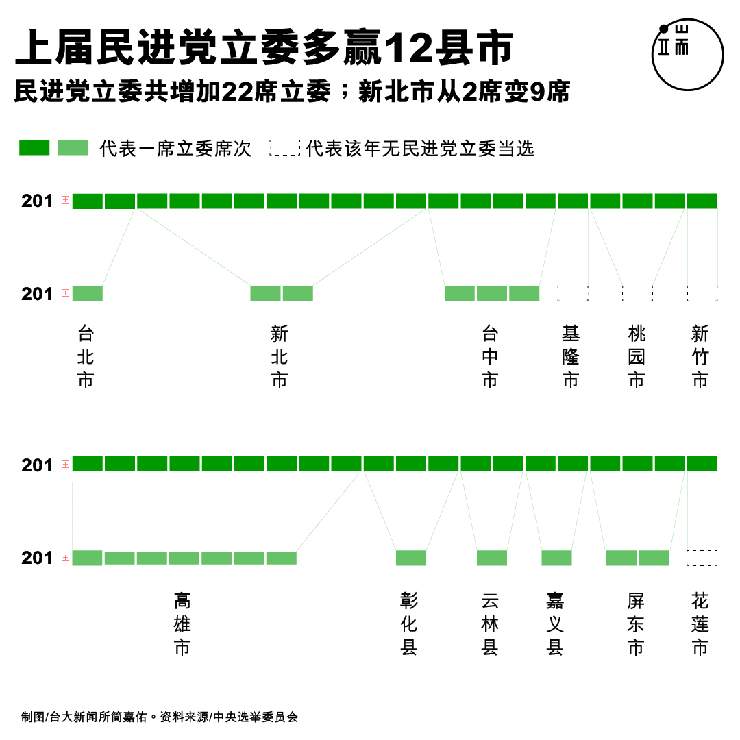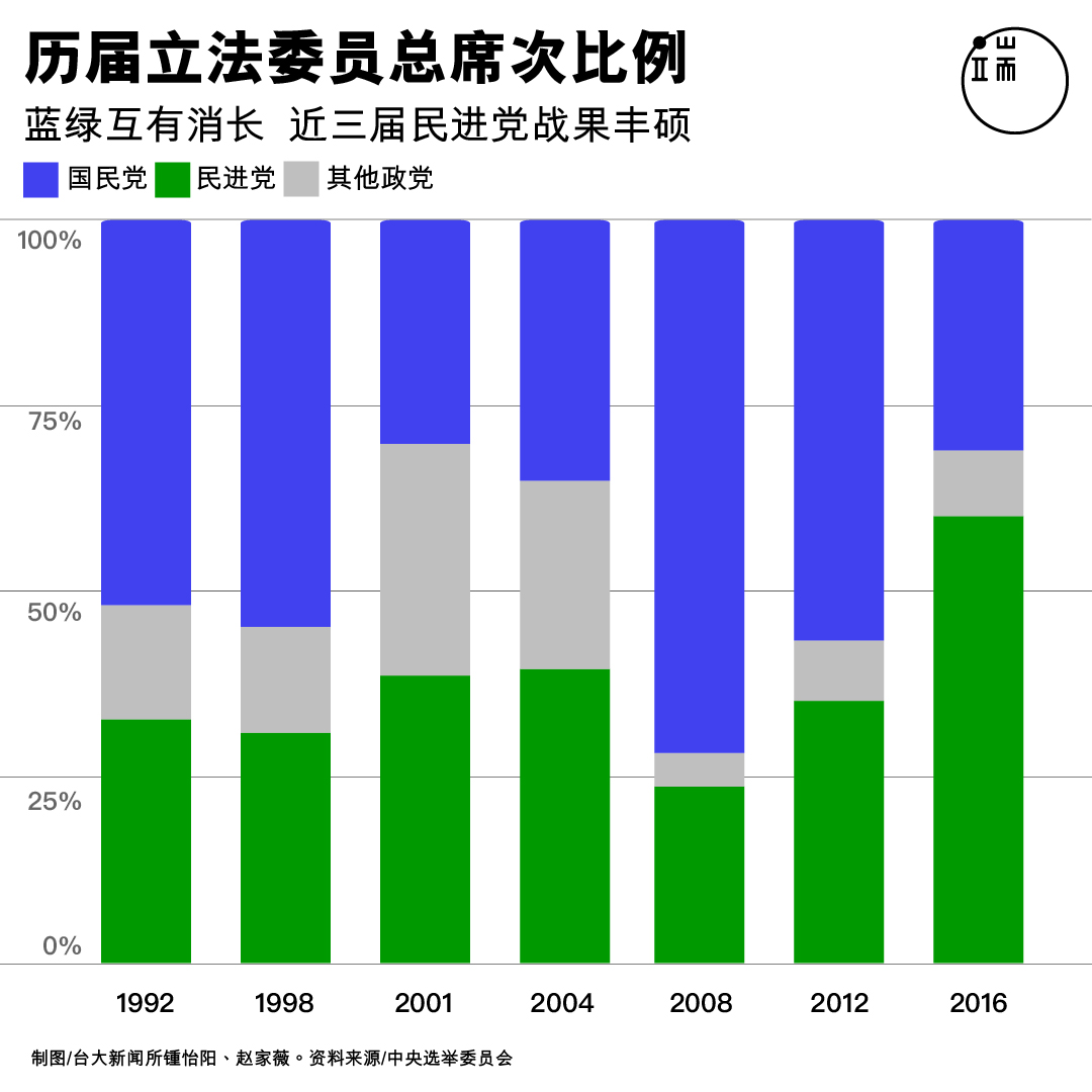 数据看2020台湾大选系列之二:立委选举面面观 编按:台湾预订本周六(十一日)举行总统及立法委员选举。除了蔡英文、宋楚瑜及韩国瑜三人角逐中华民国第十五任总统职... 台湾大学新闻所 黄子伦、曾子轩、钟怡阳、赵家薇、李柏宽、陆展、林珩、简嘉佑、那滈、刘宜庭、Pingtsung 刊登于2020-01-08 2020台湾大选 台湾 选举 3 编按:台湾预订本周六(十一日)举行总统及立法委员选举。除了蔡英文、宋楚瑜及韩国瑜三人角逐中华民国第十五任总统职位外,113席立法委员也将全数改,其中包括73席区域立委、6席原住民立委及34席全国不分区。 这次大选的候选人、当选人各有哪些个别特色?他们又呈现了怎么样的集体面貌?《端传媒》和台湾大学新闻研究所特地共同制作了“数据看2020台湾大选系列”,从选前到选后,透过数据统计和分析,呈现这次大选的方方面面。 关于蓝绿在地区的消长 关于第三势力 关于女性及原住民 关于政治世家