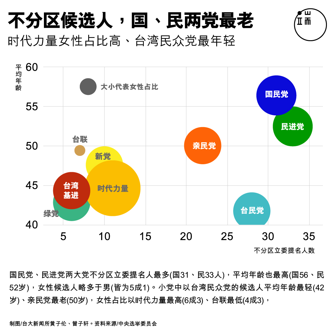 我覺得這些圖表,尤其是那張關於第三勢力的不分區候選人的 scatter plot,很適合和外國人介紹台灣國會勢力消長。