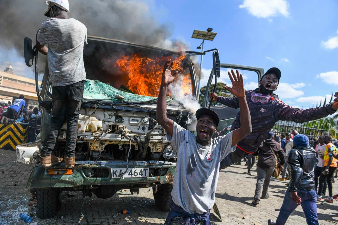 6月25日,连日来在肯尼亚首都内罗毕进行的反加税抗议演变为骚乱,有示威者冲入议会大厦纵火,警方开枪致至少5人丧生。