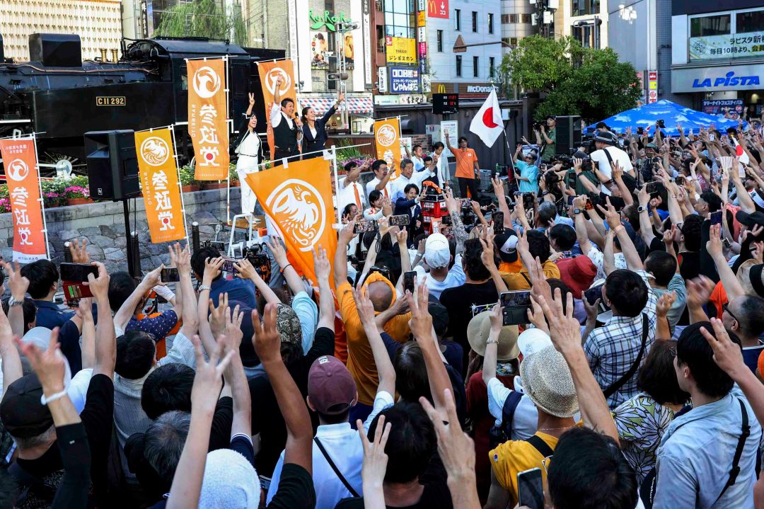 主打“日本人优先”诉求的参政党,这次风头明显盖过了国民民主党。参政党于2020年4月由神谷宗币等人创立,口号是“既然没有想投的政党,那就从零开始创一个”。神谷29岁担任大阪府吹田市市议会议员,2012年获自民党推荐参选众议员但落选,随后开设网台,讨论历史、文化及社会议题,逐渐建立知名度。