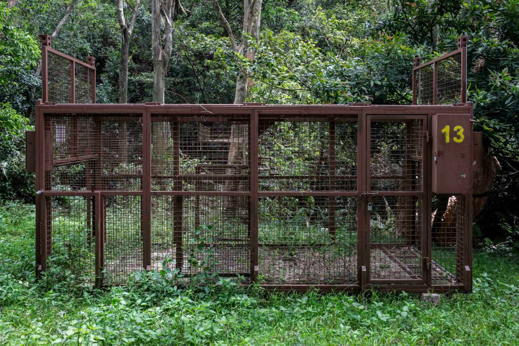 我们往往把食物放进大型捕猴笼里面,这是一个训练,不是每一次都会抓走猴子,但能令牠们习惯进入笼中,方便绝育行动的时候捉走牠们。