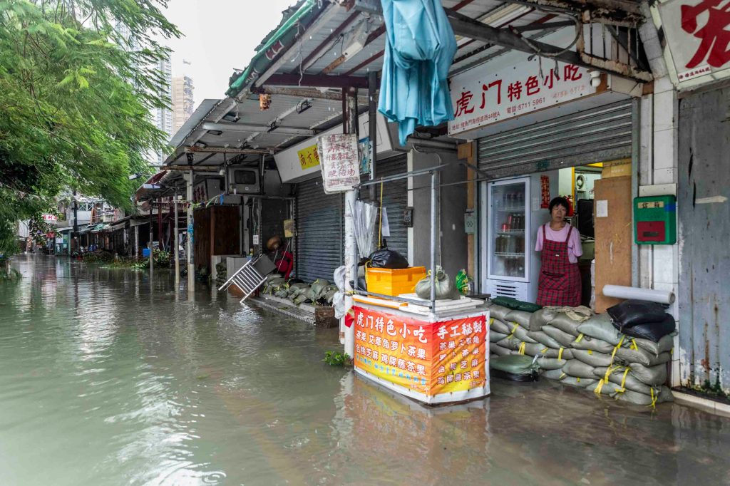 2025年9月24日,超强台风桦加沙袭港,鲤鱼门三家村大风出现水浸。摄:林振东/端传媒
