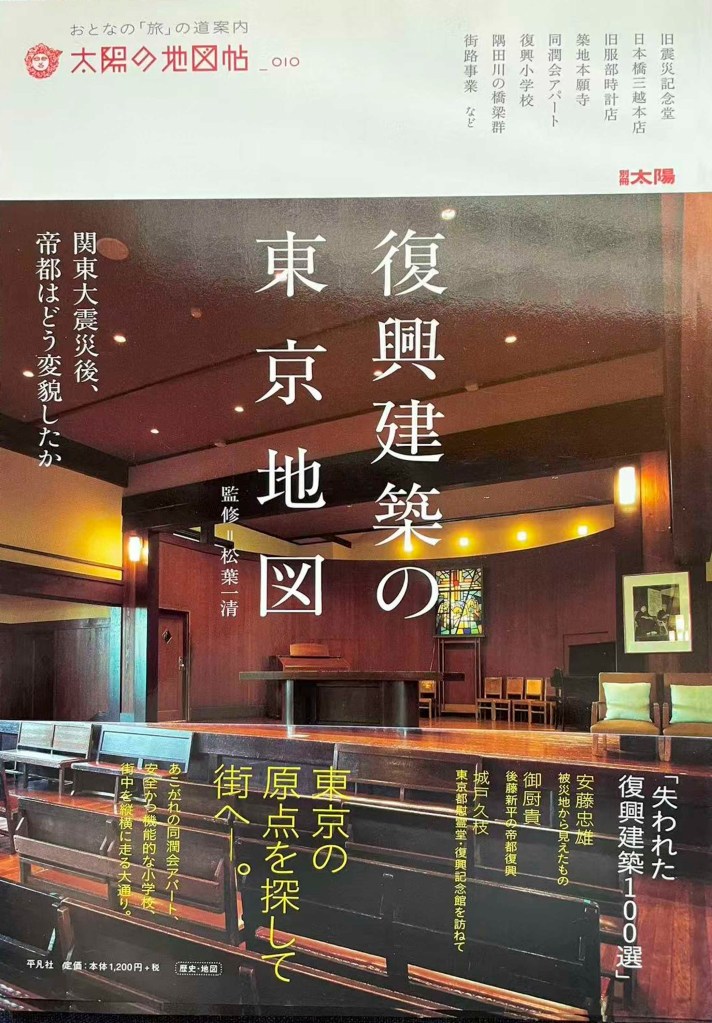 毋庸讳言,由于关东大地震、东京大空袭和战后经济发展、城市开发,以及建物本身的老朽化等多重复杂的成因,绝大多数历史性建物消失了,保存下来的只是一小部分。我的案头有一本多年前由平凡社出版的MOOK《复兴建筑的东京地图》(復興建築の東京地図),是对百年前帝都复兴计划中建造的、曾装点过大东京天际线的历史建筑群的视觉再现,也是一种建筑史研究。